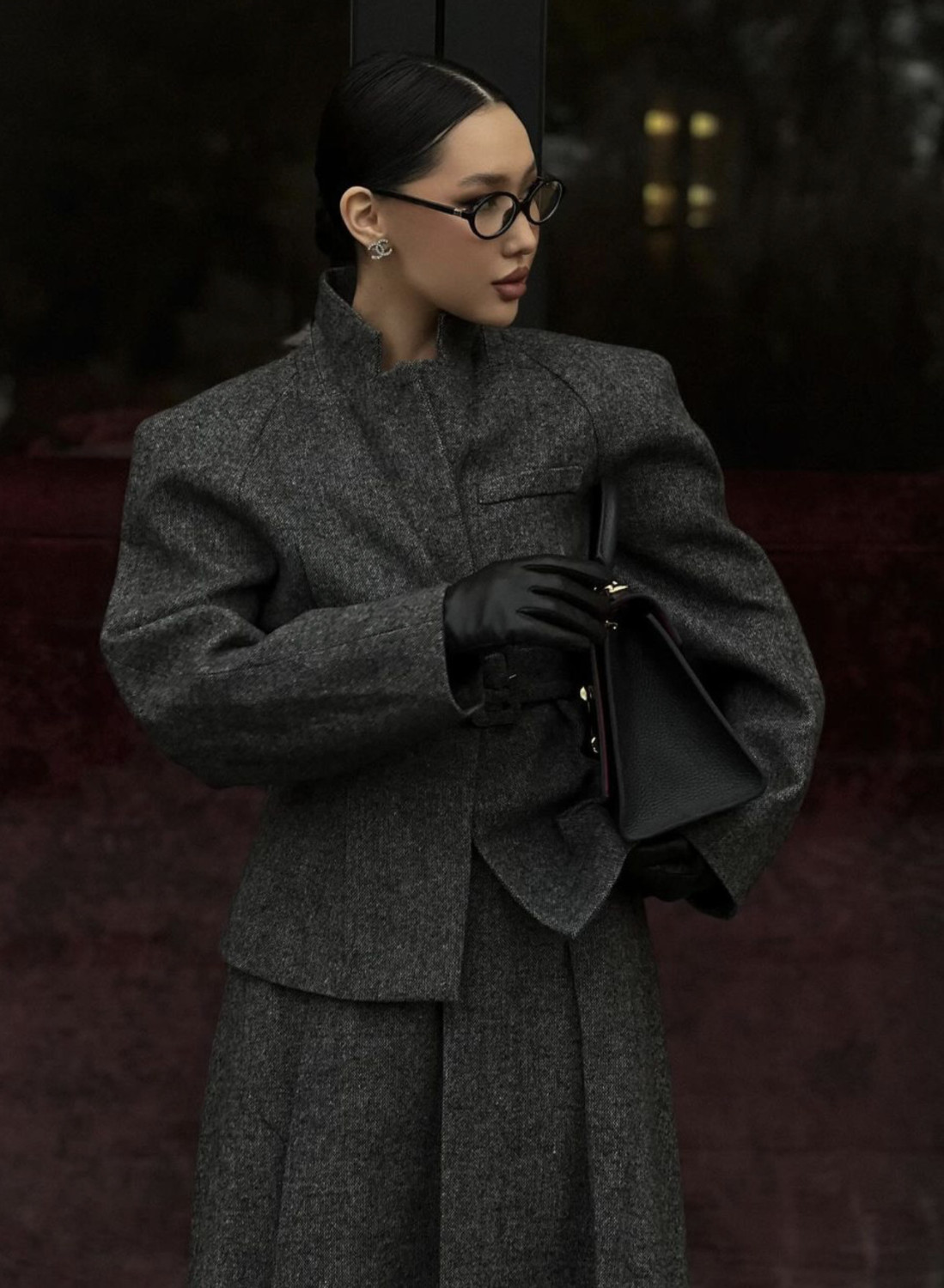 «Этот образ был создан для семейной фотосъемки — момент, который останется в моей памяти навсегда. Первый Новый год в статусе мамы: все вокруг казалось таким волшебным. Я чувствовала особую атмосферу праздника, окруженная близкими, и старалась подобрать нежный и элегантный наряд для этого события.
