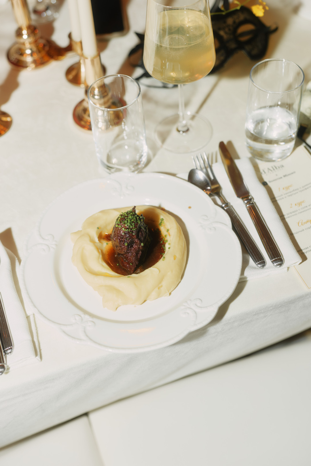 Закрытая предновогодняя вечеринка d’Alba прошла под девизом: «Сияние — наша визитная карточка. Уверенность — наша сила». В этот вечер пространство превратилось в изысканный Венецианский маскарадный бал, где каждая деталь — от декора до образов гостей — подчеркивала эстетику сияния, элегантности и уверенности, отражающую философию бренда.