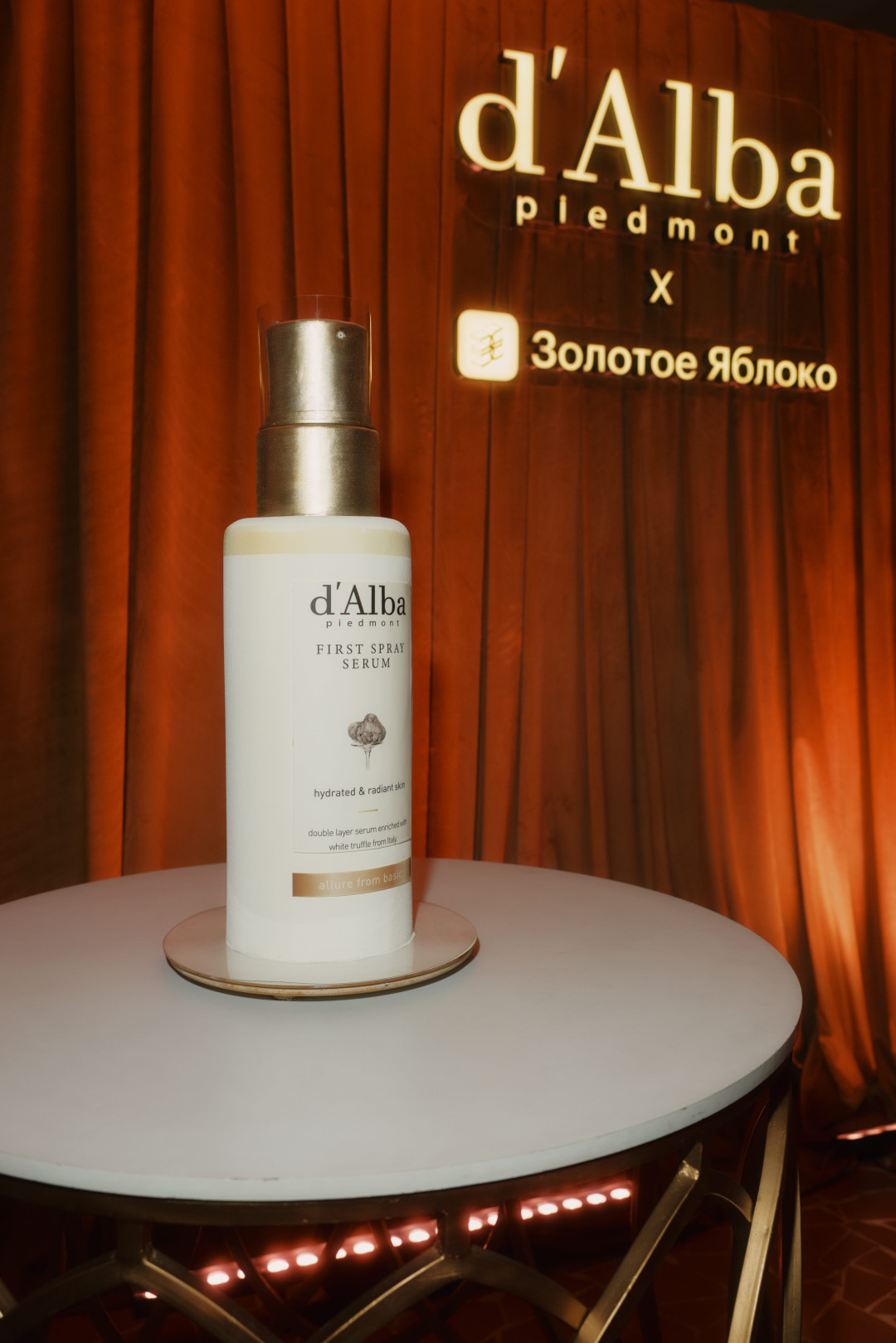 Главной героиней вечера стала спрей-сыворотка White Truffle First Spray Serum — культовый бестселлер d’Alba. Ее формула основана на запатентованном ингредиенте Trufferol™ (трюфферол), созданном из сочетания белого трюфеля и токоферола (витамина E). Клинически доказано, что Trufferol™ (трюфферол) на 569% эффективнее прополиса: он обеспечивает выраженный лифтинг-эффект и помогает сократить видимость морщин. Белый трюфель — один из самых редких и ценных ингредиентов в мире, богатый витаминами C и B12, аминокислотами и минералами, которые поддерживают эластичность кожи и обеспечивают антиоксидантную защиту.