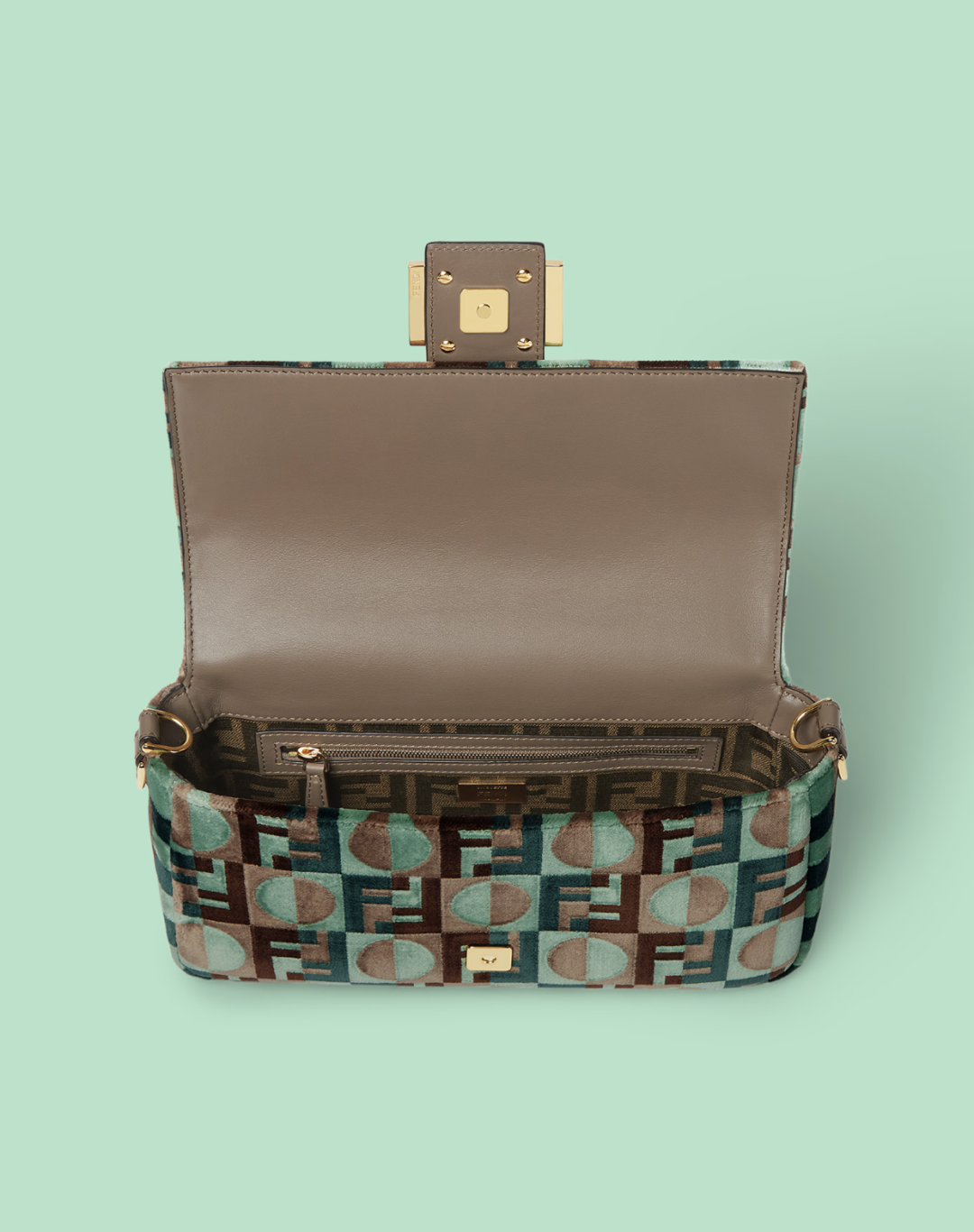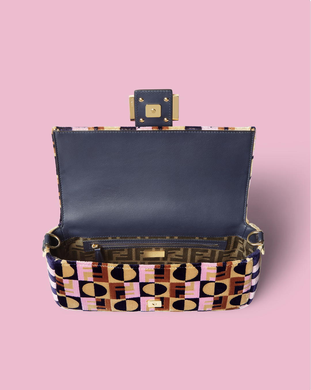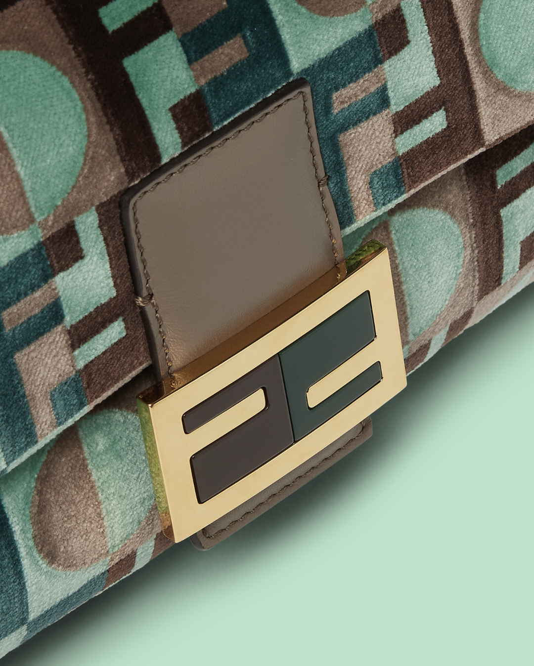 В коллекцию вошли два культовых силуэта Baguette и одна Peekaboo. Они выполнены из ткани с гобеленовым эффектом и украшены знаковым Fendi Dots — элегантным сочетанием логотипа FF и графичных ар-деко горошков.
