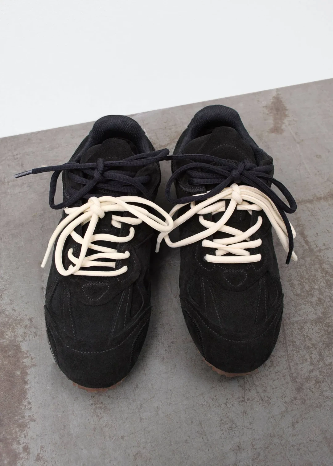 Черный цвет возвращается в новой интерпретации — и у него есть два законодателя. В сезоне SS '26 BOSS показал, как высокие черные кроссовки идеально сочетаются с минималистичными кожаными блейзерами и slip-платьями, а Cecilie Bahnsen в коллаборации с Asics превратила классические спортивные модели в стильные outdoor-варианты для городских образов.